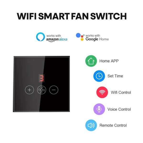 Glomarket Tuya Smart Wifi Ceiling Fan Switch Eu Standard Glass Touch Wall App Remote Control Electrical Fan Speed Switch Images |